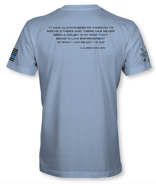 Lauren was once quoted as saying, "It has always been my passion to serve others and there has never been a doubt in my mind that being in law enforcement is what I am meant to do." This quote is included on the back of Lauren's Hero Tee as a reminder of her dedication to her calling as a peace officer.